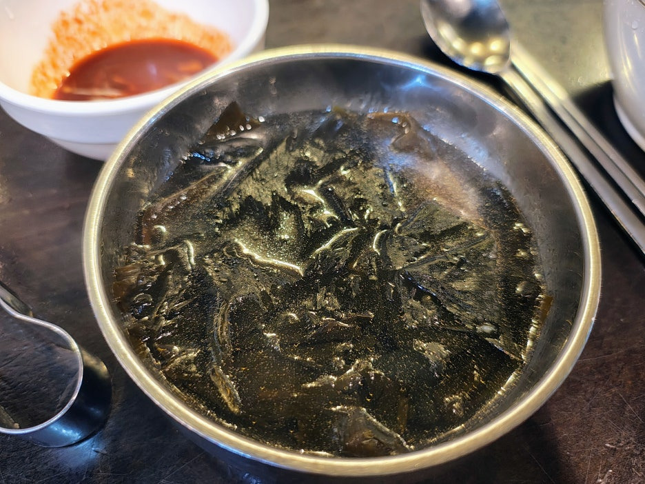 기본찬으로 미역국 나오는데